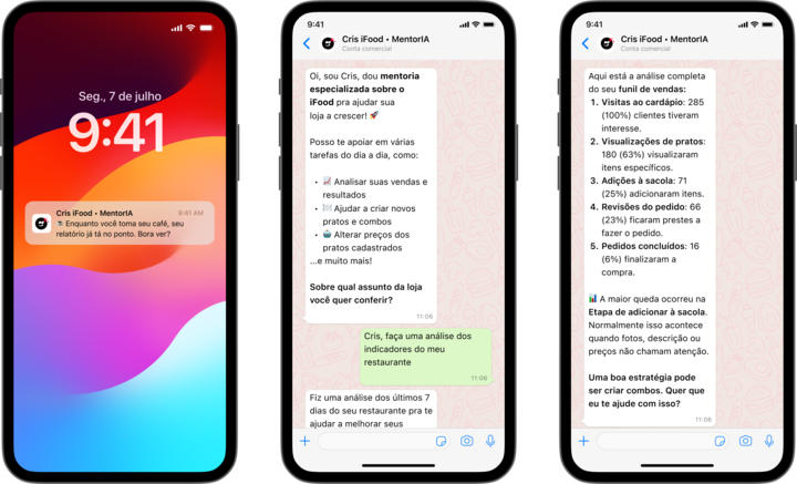 Com mais de 10 mil estabelecimentos já utilizando Cris, a assistente responde a perguntas comuns e analisa informações como o número de pedidos, taxas de cancelamento e avaliações de clientes. A partir desses dados, ela sugere estratégias personalizadas, como a criação de combos com os pratos mais vendidos.