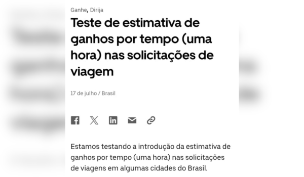 Na última sexta-feira (18), a Uber comunicou aos motoristas parceiros o lançamento de um recurso que está sendo testado em cinco cidades brasileiras: João Pessoa, Campo Grande, Teresina, Joinville e Cabo Frio. Esse novo sistema visa aumentar a transparência nas viagens, exibindo de forma clara as estimativas de ganhos por quilômetro e por tempo diretamente no aplicativo.