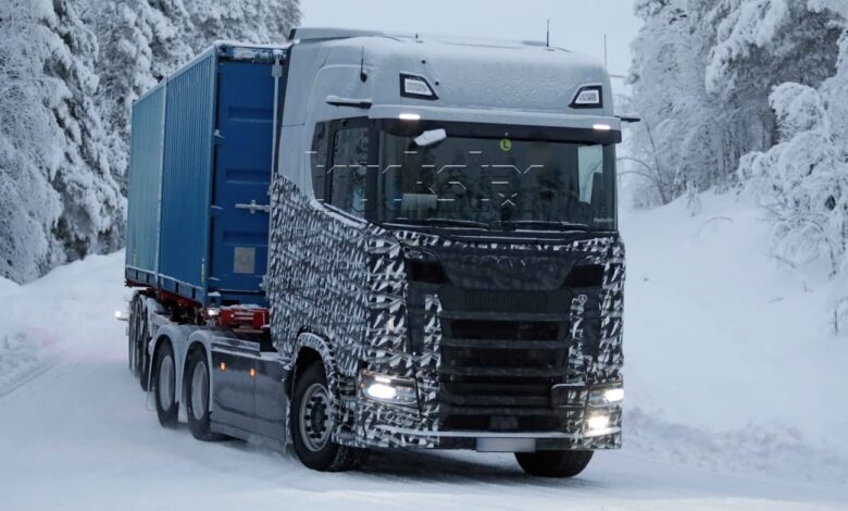 Novo Scania é testado na Europa, sem retrovisores.