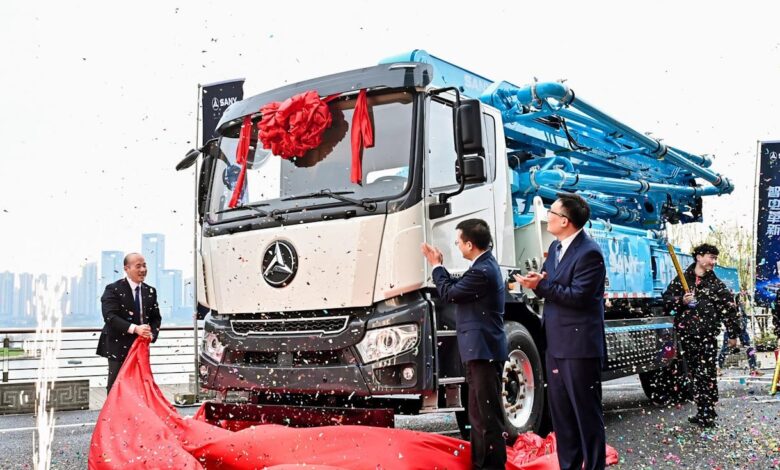 Sany apresenta novo caminhão auto-bomba híbrido com 1.400 km de alcance