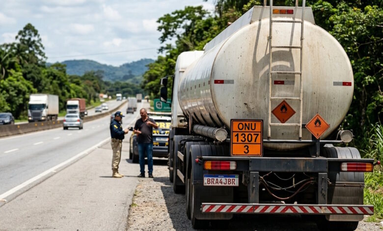 Caminhoneiro é punido por transportar carga perigosa sem habilitação adequada.